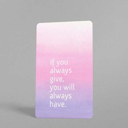 When a WordCharma card finds its way to you, keep it if you need those words. If not, pass it on to inspire someone else, perhaps a friend, relative or colleague. Or leave it to be found by someone you will never meet. Either way, you become part of a movement that celebrates giving for the sake of giving, no strings attached. Doesn’t that feel good?